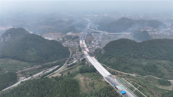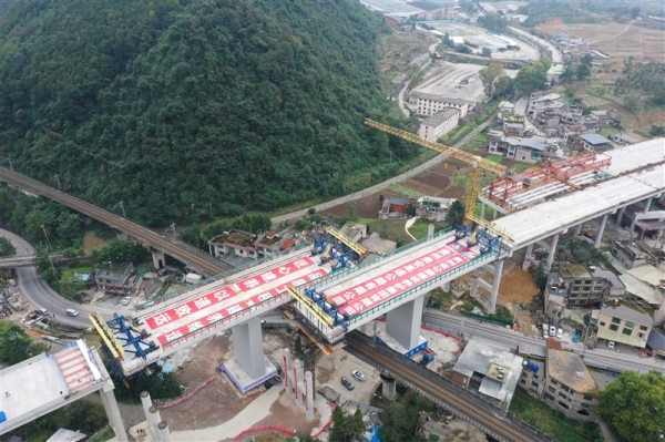 站街1号大桥全长524米,主桥采用“40米T梁+2×40米转体刚构”的复杂结构设计,转体角度达105度,单幅转体重量约7100吨,此次实现一次性同步转体到位,相当于在空中完成一次“毫米级精准转身”。该桥施工环境复杂,上跨湖雍铁路老王冲大桥与S106省道,其新建高速基桩与既有铁路基桩最小水平距离仅10.93米。自开工以来,贵安高速公司组织项目部从大型设备进场、施工方案落地,到现场施工管理、人员防护检查等各环节全程执行高标准、严要求,积极打造涉铁施工标准化典范。