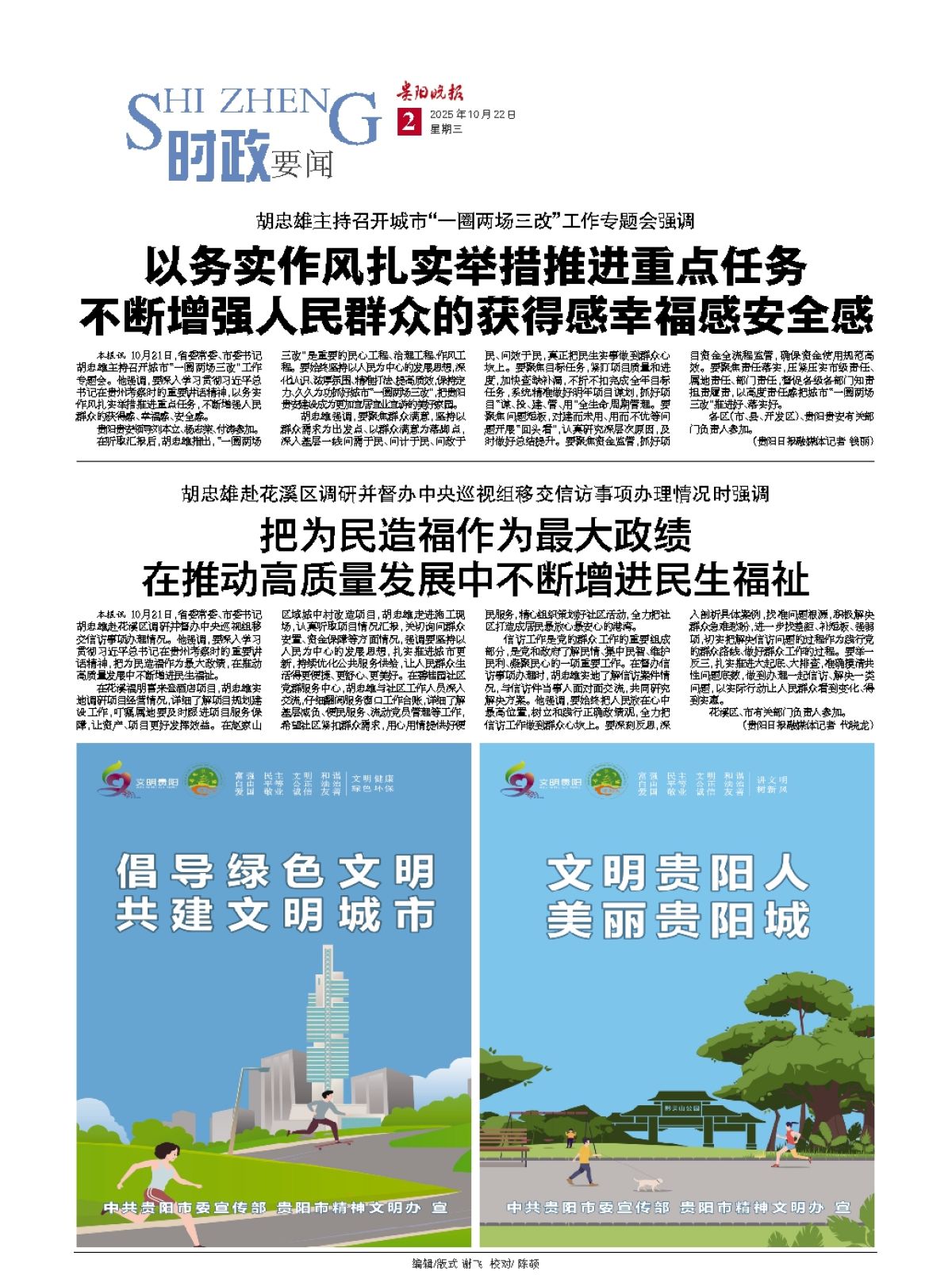 本报讯 10月21日,省委常委、市委书记胡忠雄主持召开城市“一圈两场三改”工作专题会。他强调,要深入学习贯彻习近平总书记在贵州考察时的重要讲话精神,以务实作风扎实举措推进重点任务,不断增强人民