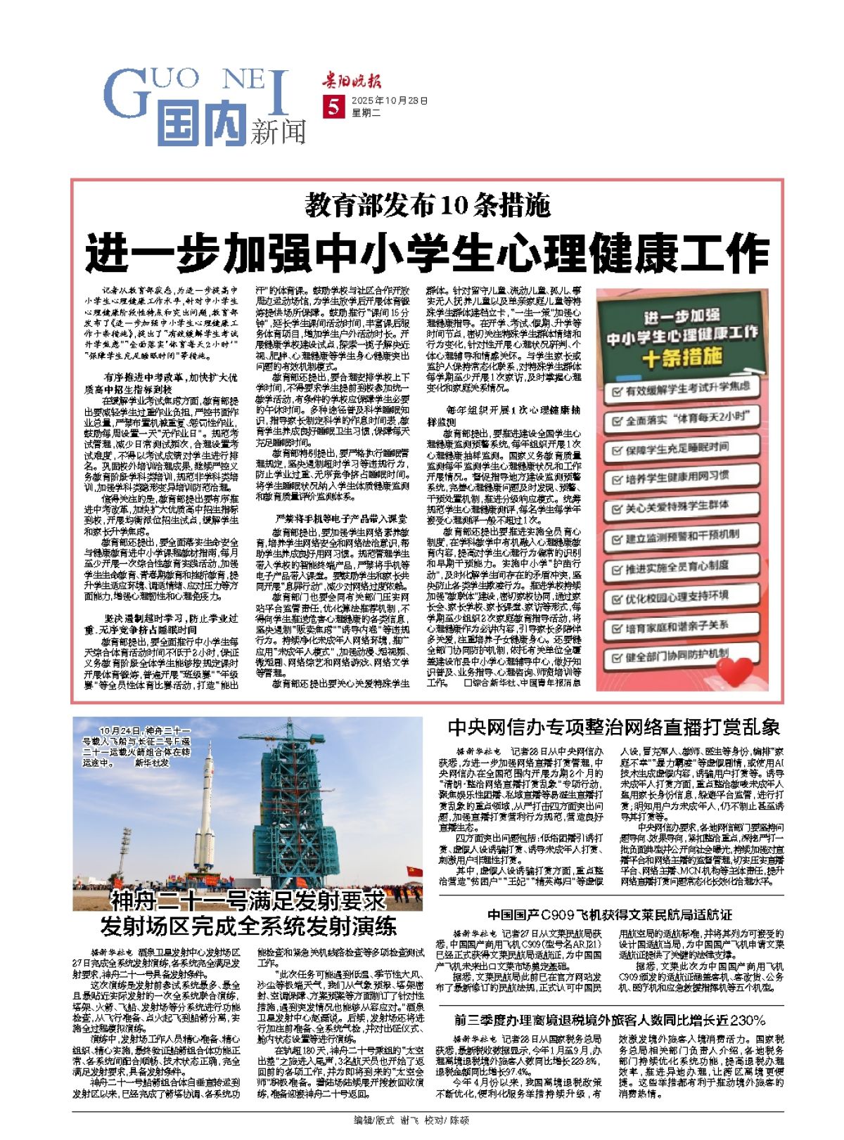 记者从教育部获悉,为进一步提高中小学生心理健康工作水平,针对中小学生心理健康阶段性特点和突出问题,教育部发布了《进一步加强中小学生心理健康工作十条措施》,提出了“有效缓解学生考试升学焦虑”“全
