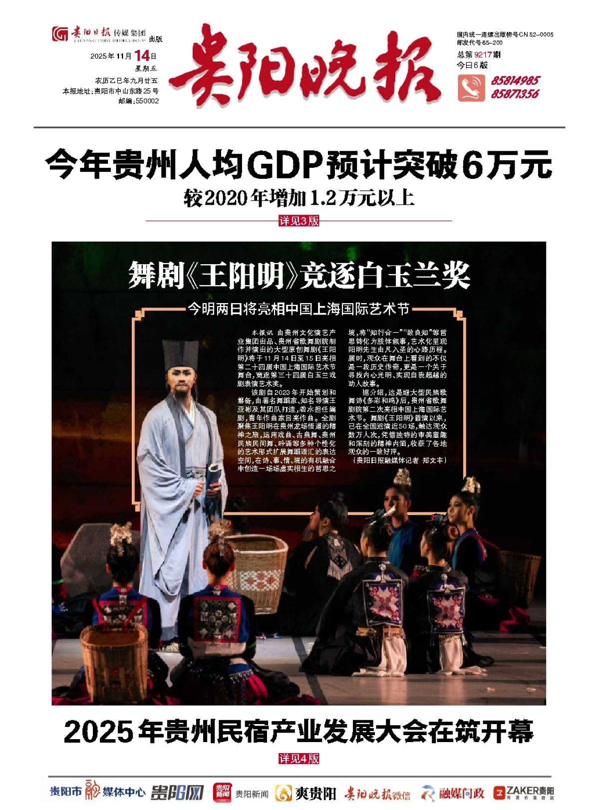 本报讯 由贵州文化演艺产业集团出品、贵州省歌舞剧院制作并演出的大型原创舞剧《王阳明》将于11月14日至15日亮相第二十四届中国上海国际艺术节舞台,竞逐第三十四届白玉兰戏剧表演艺术奖。 该