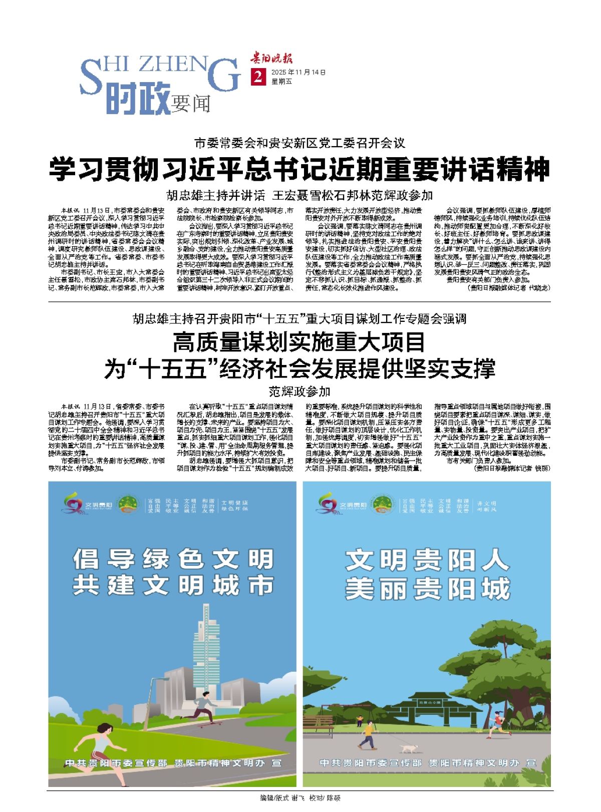 本报讯 11月13日,省委常委、市委书记胡忠雄主持召开贵阳市“十五五”重大项目谋划工作专题会。他强调,要深入学习贯彻党的二十届四中全会精神和习近平总书记在贵州考察时的重要讲话精神,高质量谋划实