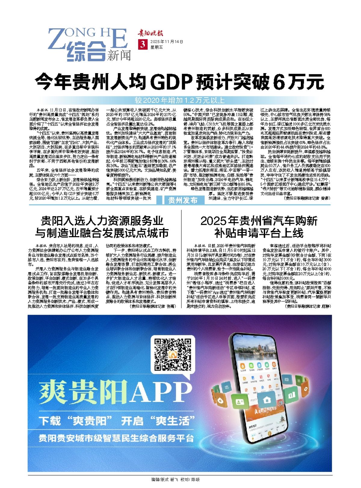 本报讯 日前,2025年贵州省汽车购新补贴申请平台上线,自11月5日0时起至12月31日(以新车开具发票时间为准),对在贵州省内汽车经销企业购买7座及以下非营运乘用车新车,且发票开具地、注册登