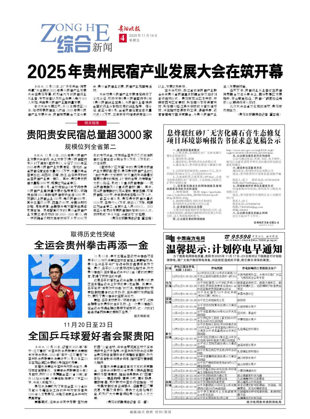 为了提高电网供电质量,贵阳市2025年11月17日-23日将对以下线路进行计划检修停电,请广大客户做好停电准备,对此给您造成的不便,我们表示深深的歉意。 南方电网贵州贵阳供电局