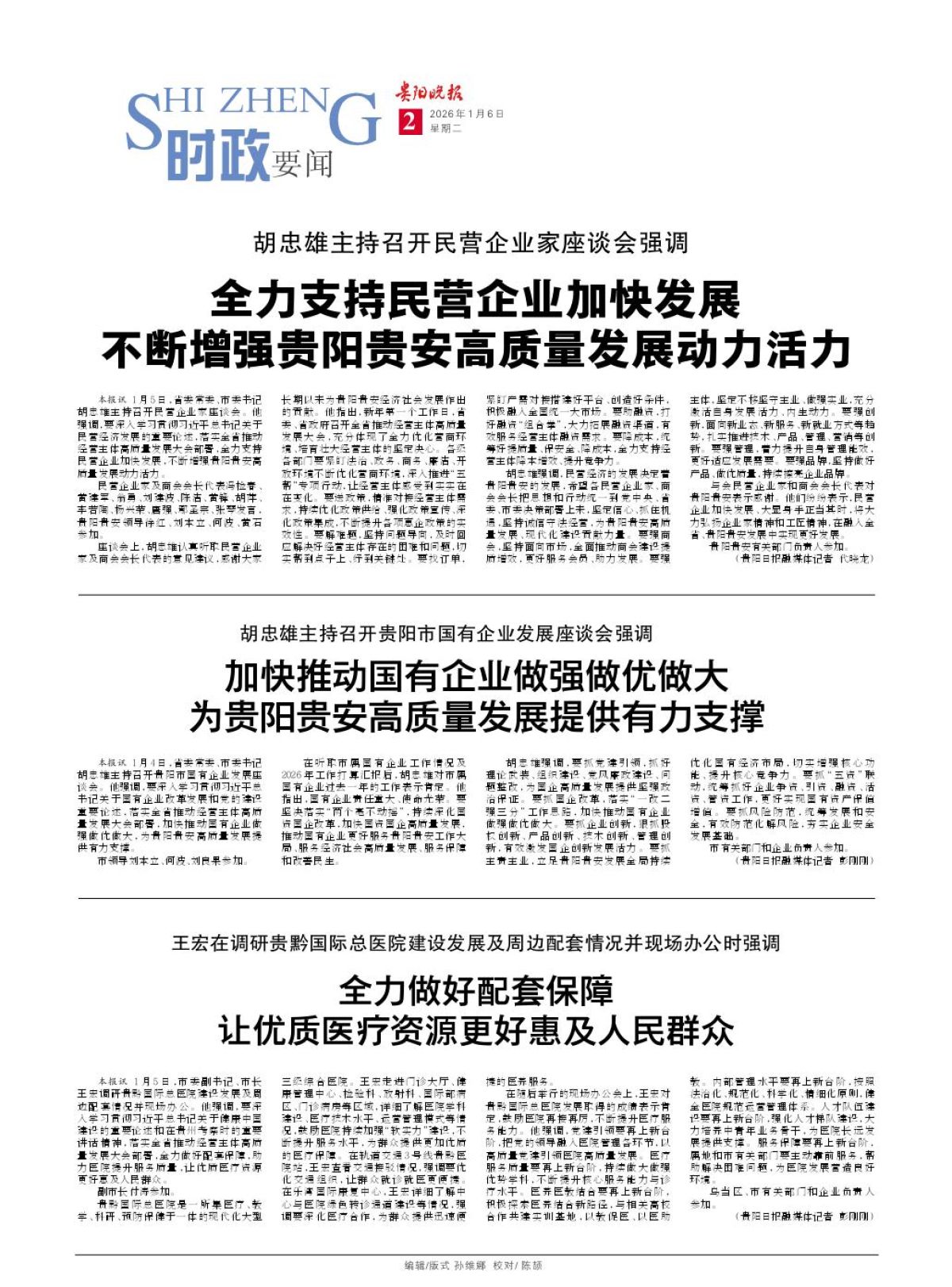 本报讯 1月4日,省委常委、市委书记胡忠雄主持召开贵阳市国有企业发展座谈会。他强调,要深入学习贯彻习近平总书记关于国有企业改革发展和党的建设重要论述,落实全省推动经营主体高质量发展大会部署,加