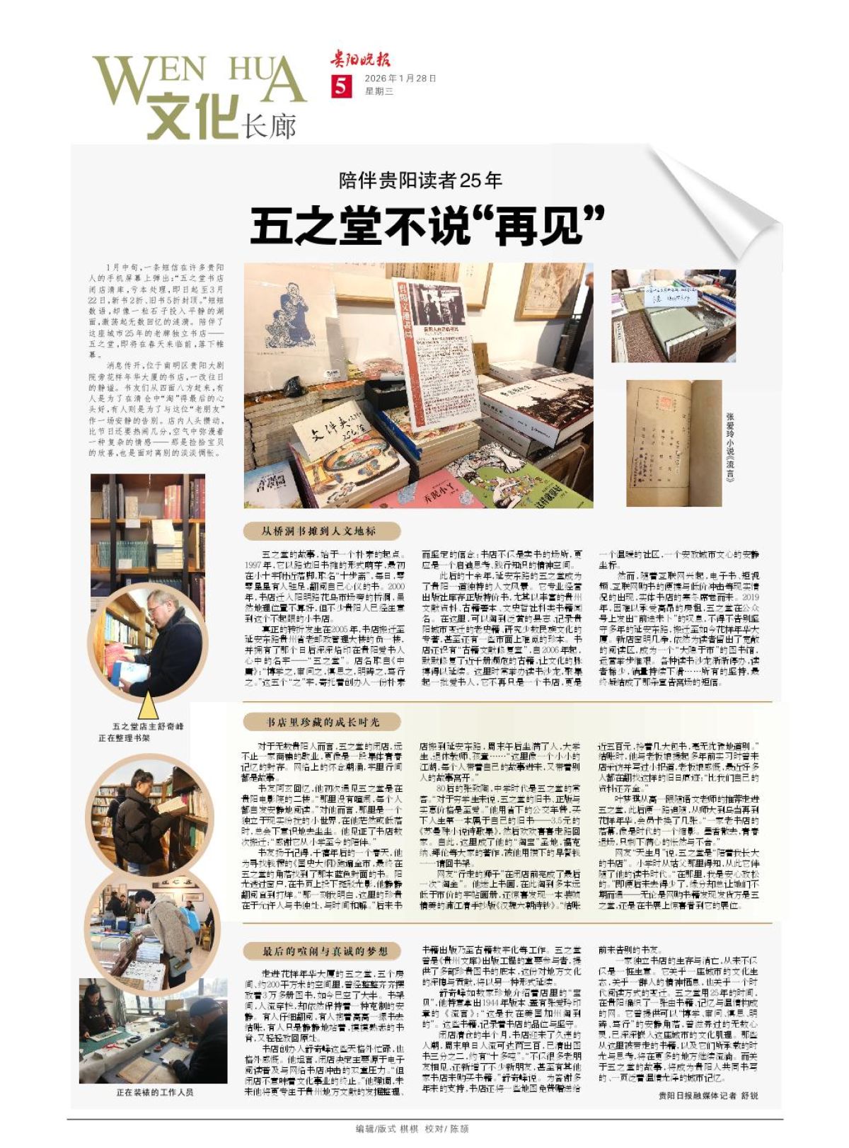 1月中旬,一条短信在许多贵阳人的手机屏幕上弹出:“五之堂书店闭店清库,亏本处理,即日起至3月22日,新书2折、旧书5折封顶。”短短数语,却像一粒石子投入平静的湖面,激荡起无数回忆的涟漪。陪伴了