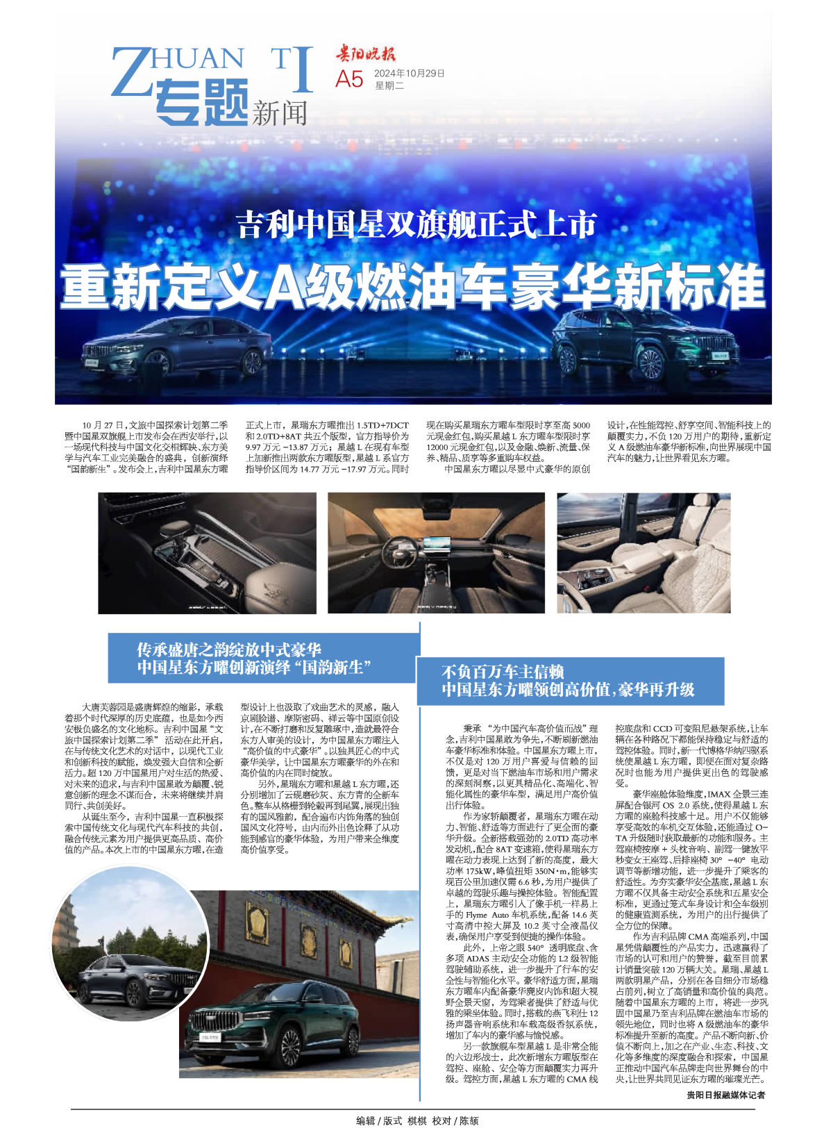 10月27日,文旅中国探索计划第二季暨中国星双旗舰上市发布会在西安举行,以一场现代科技与中国文化交相辉映、东方美学与汽车工业完美融合的盛典,创新演绎“国韵新生”。发布会上,吉利中国星东方曜正式