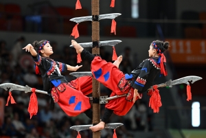 第十二届全国少数民族传统体育运动会继续在海南三亚举行,持续点燃观众热情。龙舟、射弩、秋千、民族武术、民族摔跤等项目均有奖项诞生,多项比赛循环赛、预赛如火如荼,贵州代表队在当天的各项比赛中共取得5个一等奖、6个二等奖、3个三等奖的好成绩。 据新华社电