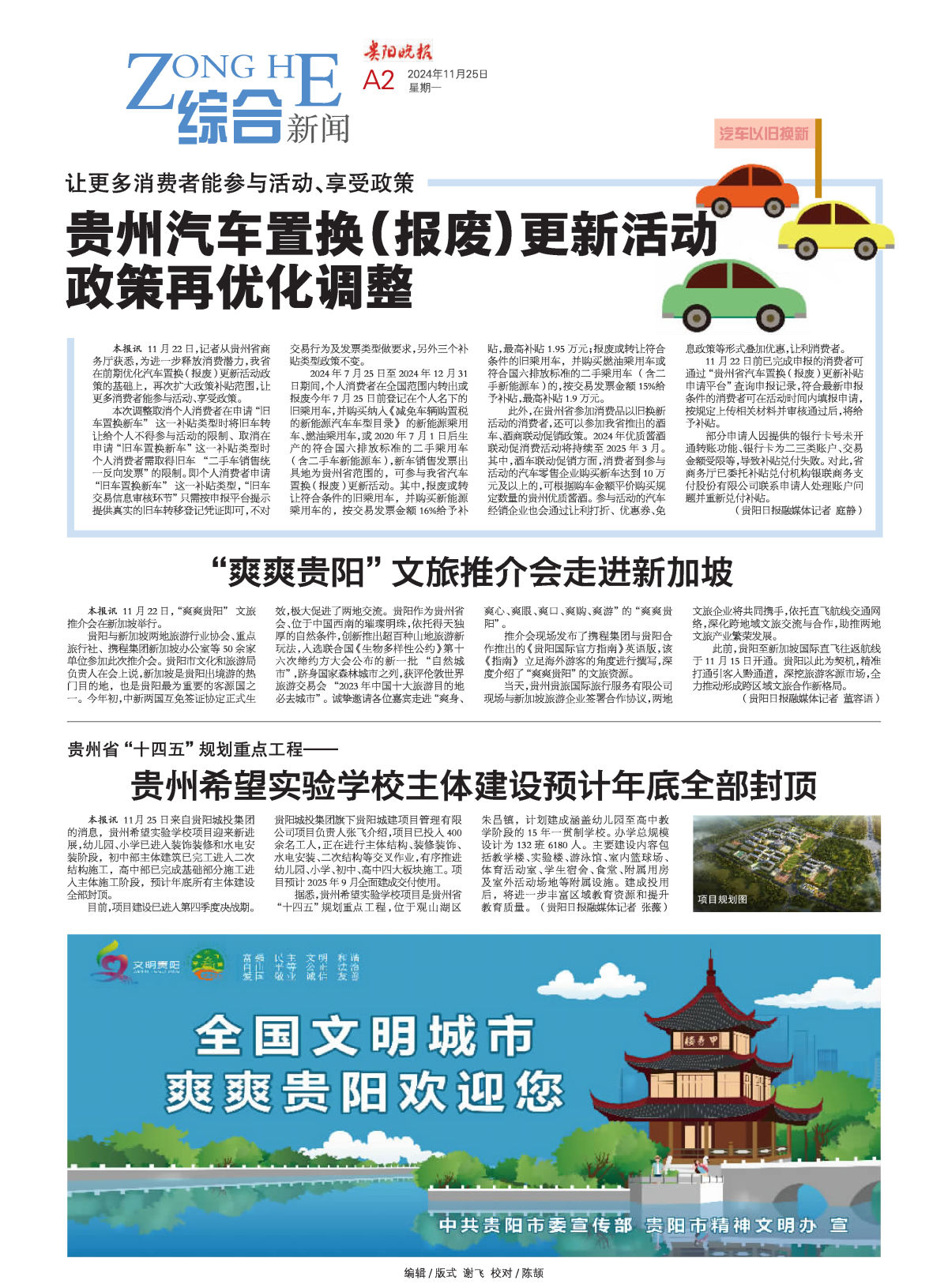 本报讯 11月22日,记者从贵州省商务厅获悉,为进一步释放消费潜力,我省在前期优化汽车置换(报废)更新活动政策的基础上,再次扩大政策补贴范围,让更多消费者能参与活动、享受政策。 本次调整取消