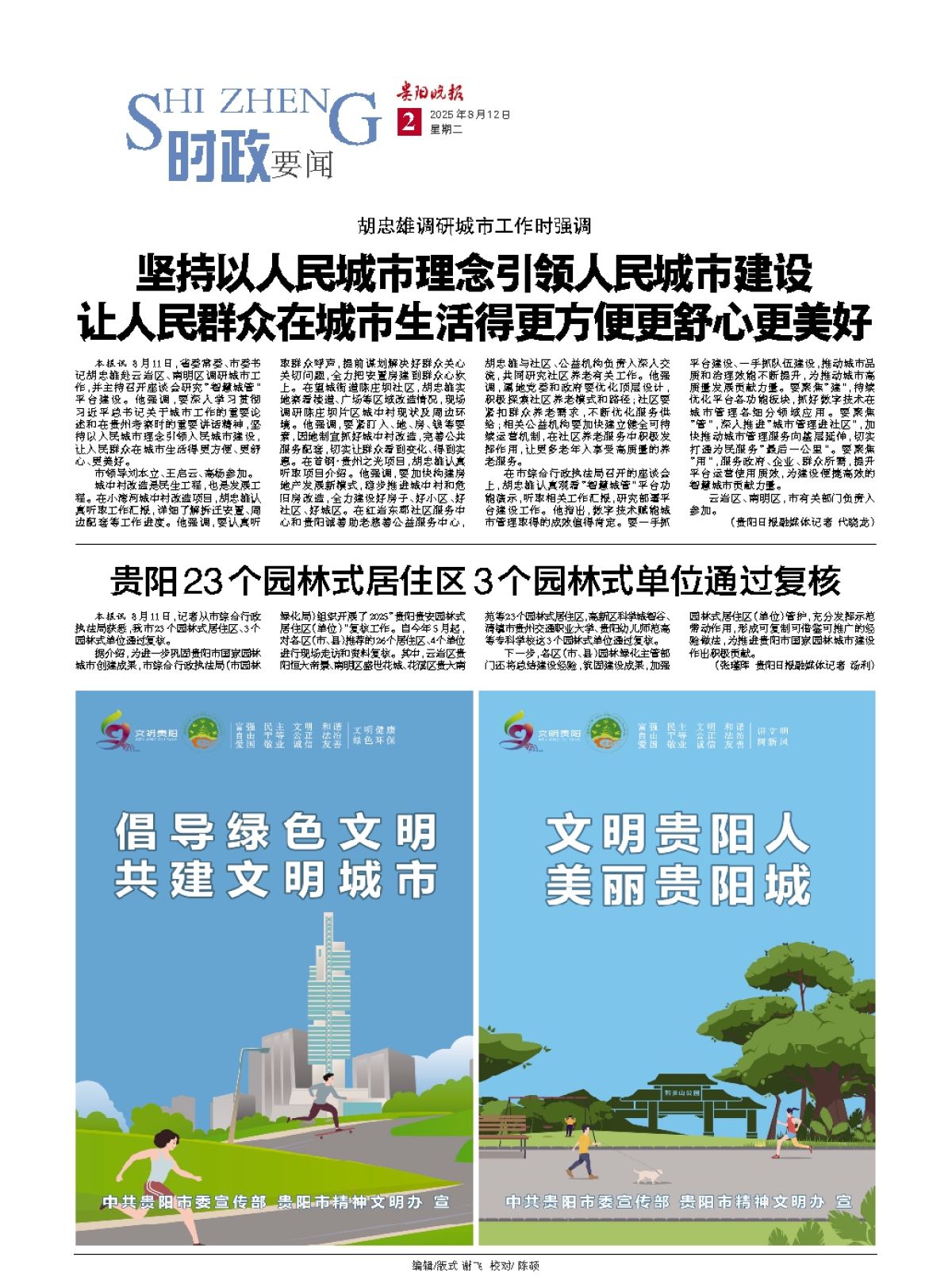 本报讯 8月11日,省委常委、市委书记胡忠雄赴云岩区、南明区调研城市工作,并主持召开座谈会研究“智慧城管”平台建设。他强调,要深入学习贯彻习近平总书记关于城市工作的重要论述和在贵州考察时的重要