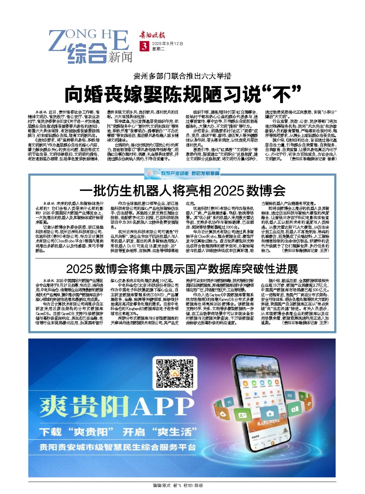 本报讯 2025中国国际大数据产业博览会专业展将于8月27日启幕,华为云、神舟通用、中电科金仓、浪潮等企业将携最新的数据库技术产品亮相,集中展示国产数据库在多个核心领域的突破性进展和最新应用成