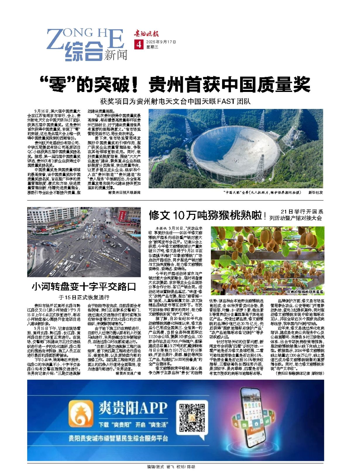 9月16日,第六届中国质量大会在江苏省南京市举行,会上,贵州射电天文台中国天眼FAST团队获第五届中国质量奖。这是贵州首次获得中国质量奖,实现了“零”的突破;这也是此届大会上唯一获得中国质量奖