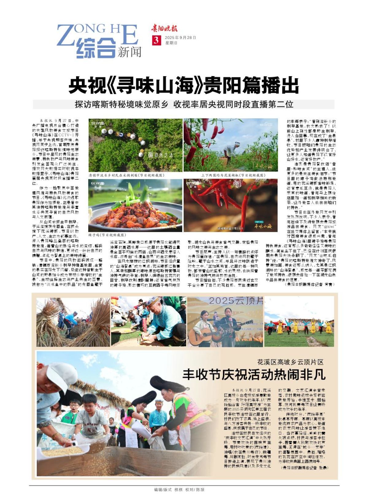 本报讯 9月27日,中央广播电视总台精心打造的大型风物美食文旅节目《寻味山海》在CCTV-1开播,并于央视频客户端、央视网同步上线,首期聚焦贵阳探访喀斯特秘境味觉原乡,节目中呈现的贵阳生态美景
