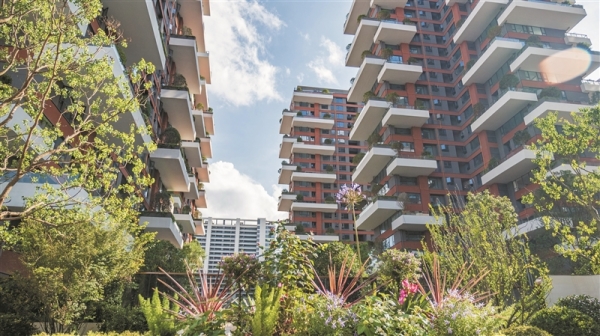 这里被人们称为“垂直森林”——中国铁建拥有国家专利的“第四代建筑”。不只是概念,更是真实的体验:推开窗,不再是冷冰冰的钢筋水泥,而是随风轻摇的紫薇与常春藤;每户配备的星空露台和立体绿化,真正把整片森林“纵向”叠入了日常生活。