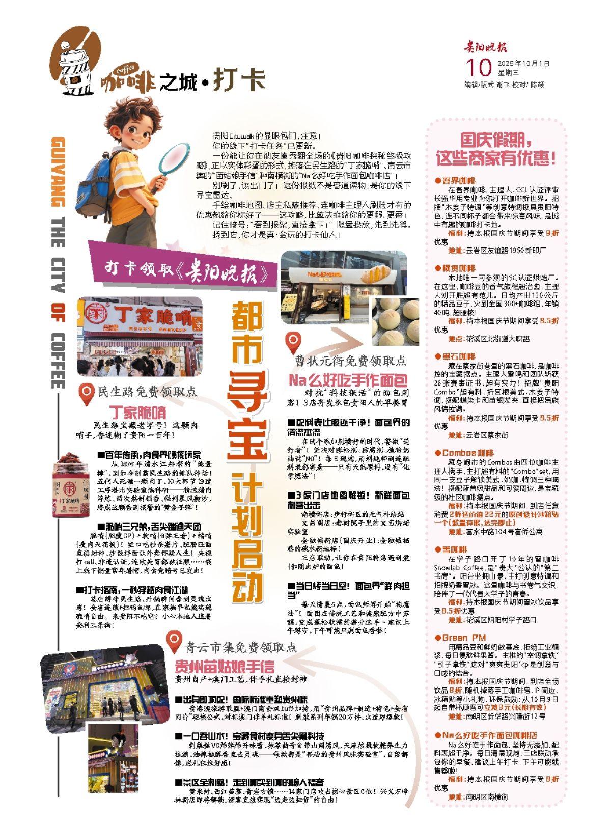贵阳Citywalk的显眼包们,注意! 你的线下“打卡任务”已更新。 一份能让你在朋友圈秀翻全场的《贵阳咖啡探秘终极攻略》,正以实体彩蛋的形式,掉落在民生路的“丁家脆哨”、青云市集