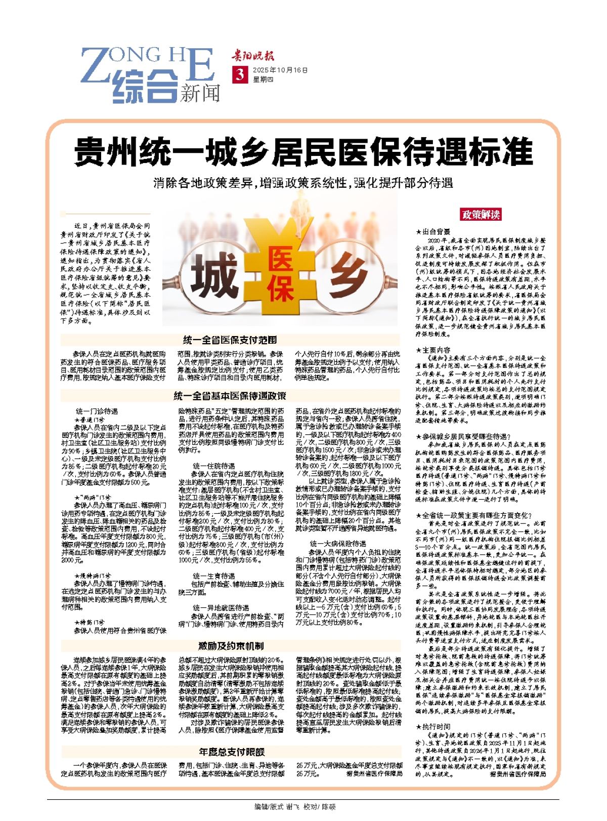 (《贵州统一城乡居民医保待遇标准》由贵阳晚报为您提供,转载请注明来源,未经书面授权许可,不得转载或镜像。)