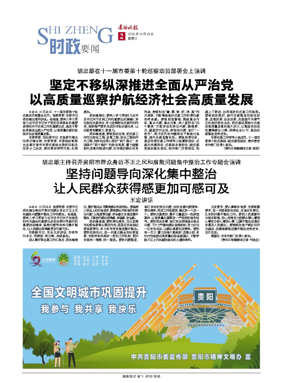 本报讯 10月28日,省委常委、市委书记胡忠雄主持召开贵阳市群众身边不正之风和腐败问题集中整治工作专题会。他强调,要深入学习贯彻习近平总书记关于加强党的作风建设的重要论述和在贵州考察时的重要讲