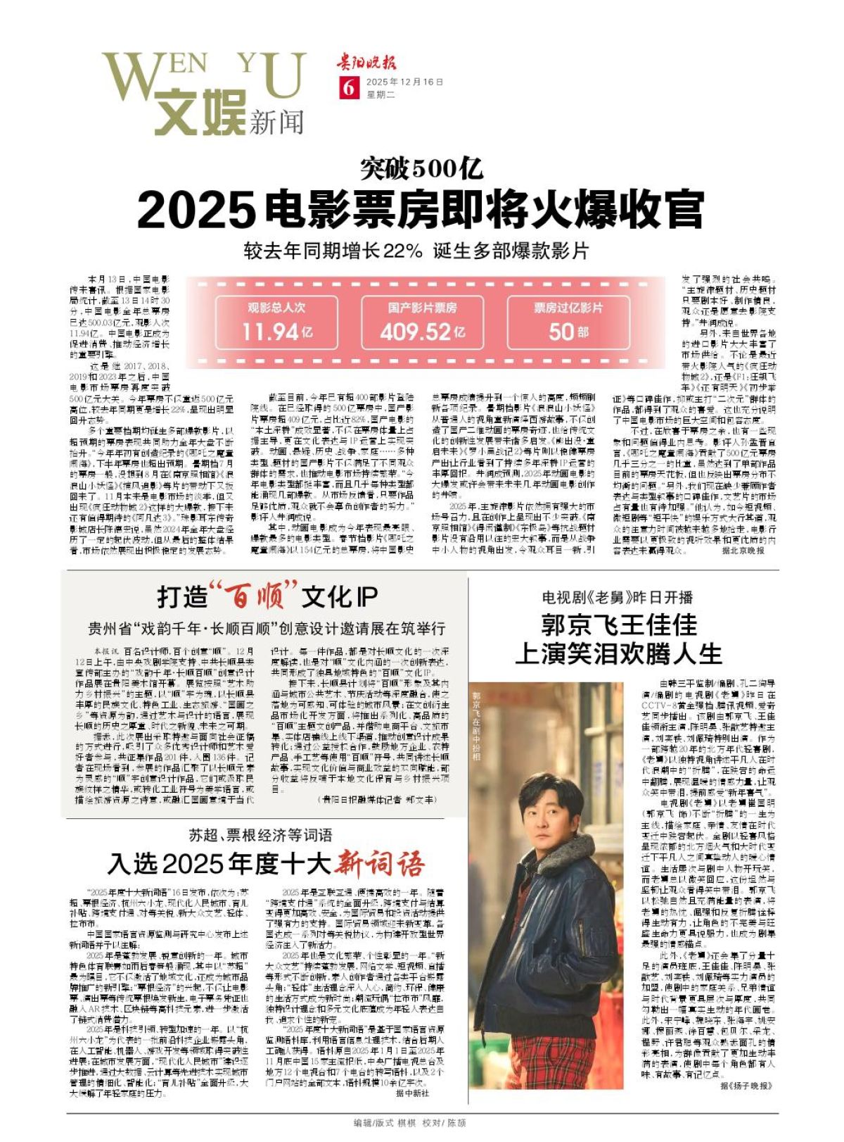 (《郭京飞王佳佳 上演笑泪欢腾人生》由贵阳晚报为您提供,转载请注明来源,未经书面授权许可,不得转载或镜像。)