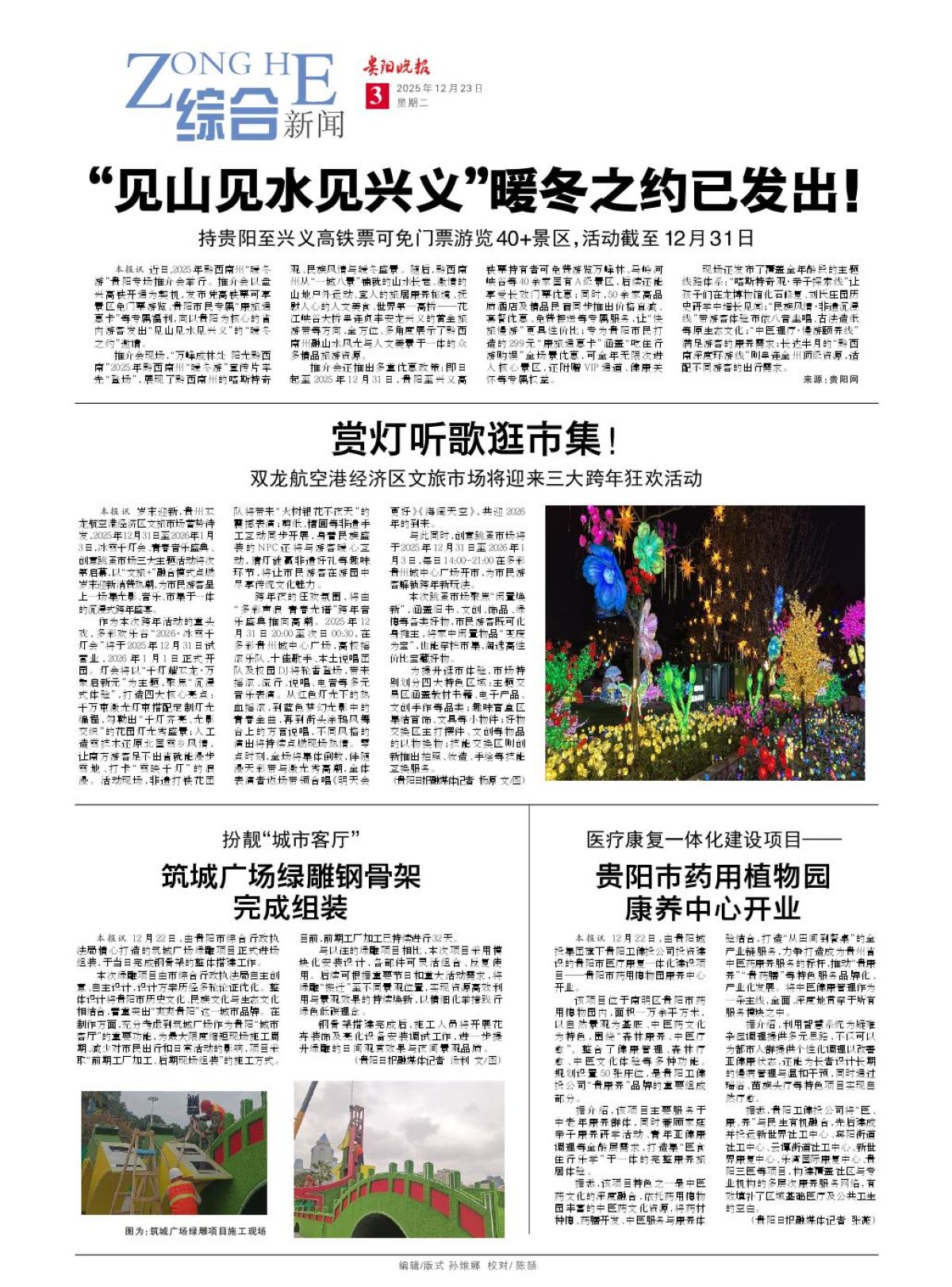 本报讯 12月22日,由贵阳市综合行政执法局精心打造的筑城广场绿雕项目正式进场组装,于当日完成钢骨架的整体搭建工作。