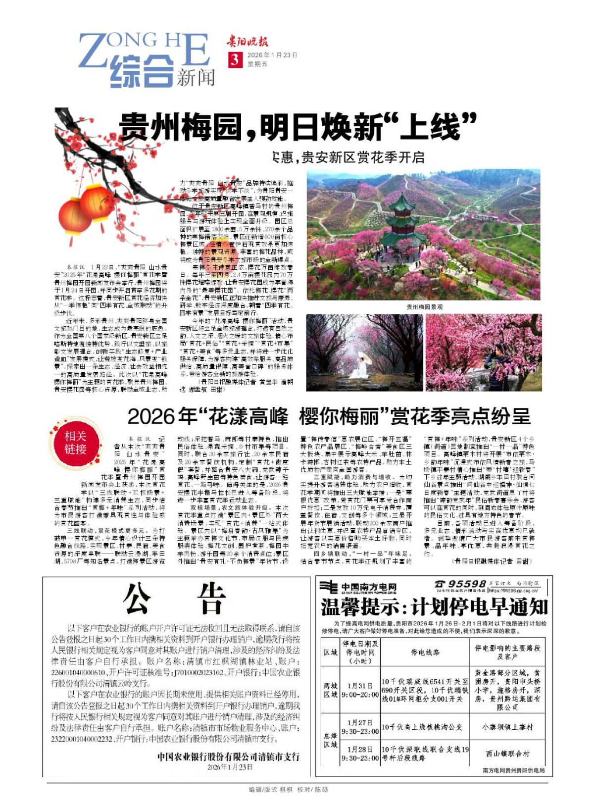 为了提高电网供电质量,贵阳市2026年1月26日-2月1日将对以下线路进行计划检修停电,请广大客户做好停电准备,对此给您造成的不便,我们表示深深的歉意。 南方电网贵州贵阳供电局