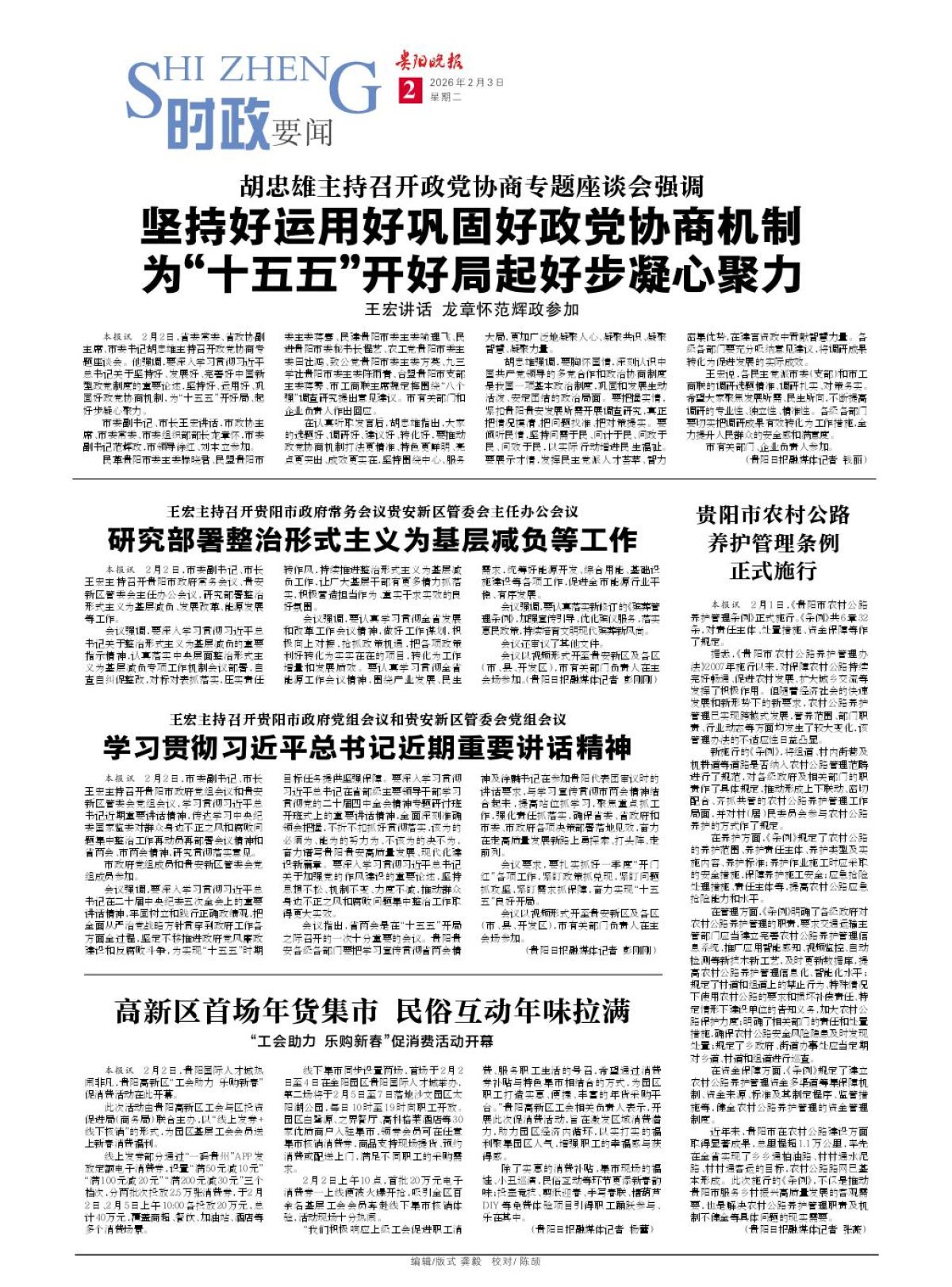 (《坚持好运用好巩固好政党协商机制 为“十五五”开好局起好步凝心聚力》由贵阳晚报为您提供,转载请注明来源,未经书面授权许可,不得转载或镜像。)