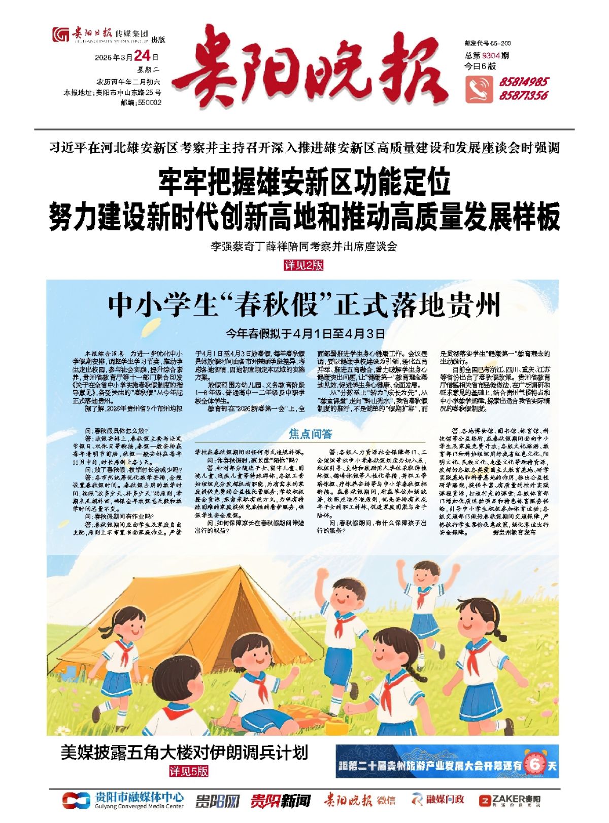 从“分数至上”转为“成长为先”,从“教室课堂”走向“黔山秀水”,我省春秋假制度的推行,不是简单的“假期扩容”,而是贯彻落实学生“健康第一”教育理念的生动践行。