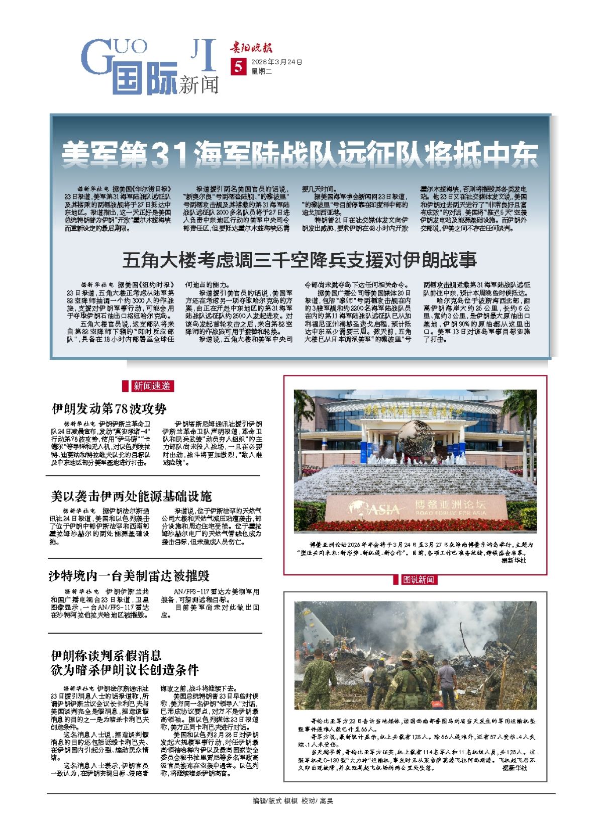 据新华社电 据美国《纽约时报》23日报道,五角大楼正考虑从陆军第82空降师抽调一个约3000人的作战旅,支援对伊朗军事行动,可能会用于夺取伊朗石油出口枢纽哈尔克岛。 五角大楼官员说,这支