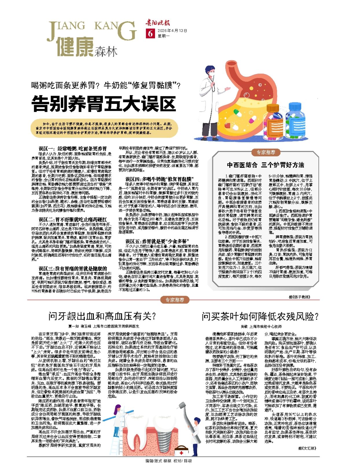 如今,由于生活习惯不健康,很多人的胃都会有这样那样的小问题。本期,南京市中西医结合医院脾胃病科副主任医师吴昊为大家详细解读日常护胃的五大误区,并分享经过临床验证的中西医结合护胃好方法,帮助科学