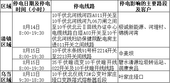 为了提高电网供电质量,贵阳市2025年8月11日-8月17日将对以下线路进行计划检修停电,请广大客户做好停电准备,对此给您造成的不便,我们表示深深的歉意。